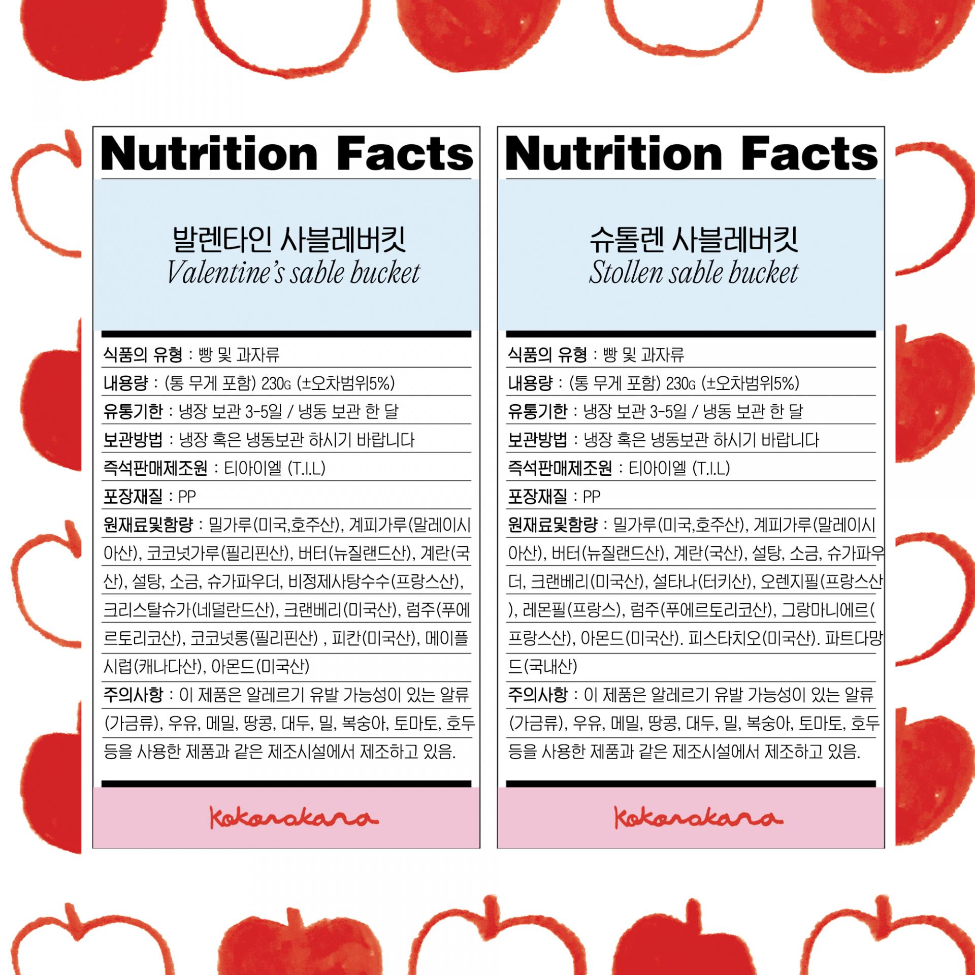 - 상온보관이 가능한 구움과자 (사블레버킷, 마들렌러스크) 의 경우 아이스팩 없이 출고 될 수 있는 점 구매 시 참고 부탁 드리겠습니다.